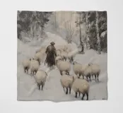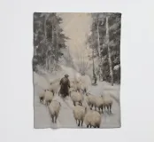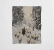 Un idilliaco motivo invernale: un pastore conduce il suo gregge di pecore lungo un sentiero boschivo innevato, circondato da alti alberi e da una luce soffusa. Questo quadro unisce la vicinanza alla natura, la tranquillità e il tradizionale romanticismo invernale. I toni tenui dei colori e l'atmosfera pacifica ne fanno un'opera d'arte senza tempo. Perfetto come murale, cuscino, tazza o disegno tessile: un'idea meravigliosa per chi ama le scene rurali, gli animali in inverno e l'arte nostalgica.