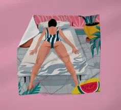 La luce del sole filtra attraverso le foglie tropicali mentre lei galleggia tranquillamente in una piscina, completamente a suo agio. Il mondo intorno a lei si dissolve in colori tenui e forme tranquille: palloni da spiaggia, sandali e il tempo stesso vengono lasciati alle spalle. Questo pezzo è un'espirazione visiva che ricorda di fermarsi, respirare e lasciare che il riposo sia sufficiente.