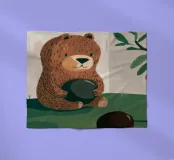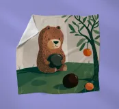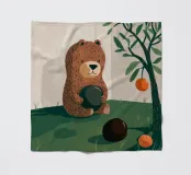 In un giardino stravagante, un orso tiene in mano una succosa anguria circondata da frutti e da un albero rigoglioso. Questa vivace composizione celebra l'abbondanza e la dolcezza della natura.