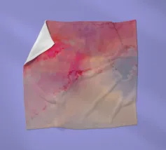 Nuvola astratta di inchiostro rosa, viola e blu su sfondo arancione e rosso.