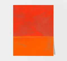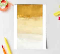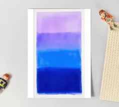 Un'opera d'arte astratta minimalista in campo cromatico ispirata a transizioni morbide e bordi grezzi del pennello.