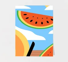 Un fresco mix di anguria succosa e api indaffarate! Questo disegno mostra la bellezza di una succosa anguria e delle api che le ronzano intorno.