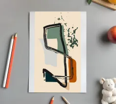 Linee radianti in tonalità terrose come il verde, il marrone e l'arancione si estendono da un cerchio centrale, creando un effetto a raggiera. Il design è caratterizzato da un'estetica retrò con motivi simmetrici e una tavolozza di colori rilassanti.