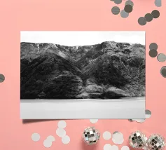 Eine elegante Schwarz-Weiß-Fotografie zeigt die faszinierende Maserung und Struktur von Marmor und Felsen. Die maritimen Klippen strahlen eine zeitlose Schönheit aus und fangen die Kraft der Natur in abstrakter Form ein.
