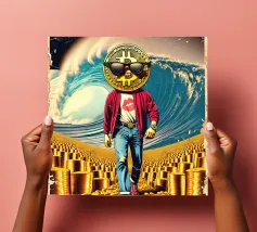 Il possessore di bitcoin e trader di criptovalute è seduto sulla spiaggia