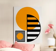 Ispirato al movimento Bauhaus, questo pezzo celebra l'armonia tra struttura e spontaneità. Linee pulite, asimmetria equilibrata e una tavolozza di colori audace ma sobria si fondono per creare un'estetica modernista che è allo stesso tempo retrò e senza tempo.