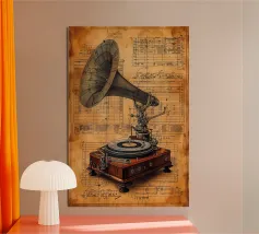 A nostalgic collage art print blending vintage charm with romantic whimsy. An ornate gramophone bursts with vibrant flowers and vinyl records, while a dancing couple captures the magic of timeless music. Perfect wall art for music lovers, retro decor fans, or anyone drawn to sentimental storytelling through design.