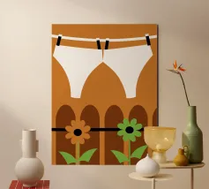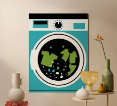 This "Drying Clothes" design offers a modern and colorful illustration of the clothes drying process.