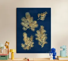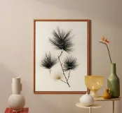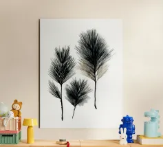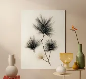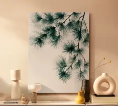 A refined botanical study of pine needles rendered with clean ink-like linework and subtle neutral accents. This minimalist piece merges natural form with graphic precision, ideal for modern interiors, forest-inspired spaces, or collectors of organic simplicity.