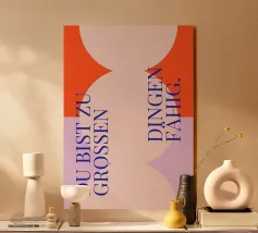 Questo motivo del Daily Motivation Shop combina parole ispiratrici, affermazioni positive e un design tipografico moderno. I messaggi chiari hanno lo scopo di motivare, rafforzare e dare nuova energia ogni giorno. Come elegante decorazione da parete, il poster è perfetto per il soggiorno, la camera da letto, l'ufficio o l'home office. Ideale per tutti coloro che amano l'ispirazione, la consapevolezza e la mentalità positiva, anche come regalo speciale e significativo.