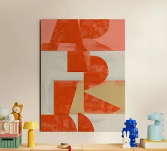 A bold exploration of structure through vivid abstraction. Dominated by layers of crimson, orange, and coral, this dynamic composition interlocks geometric forms with expressive brushwork, creating a rhythmic energy that feels architectural yet emotive. The interplay of sharp angles and soft gradients evokes movement, heat, and vitality — a striking centerpiece for any modern space.