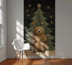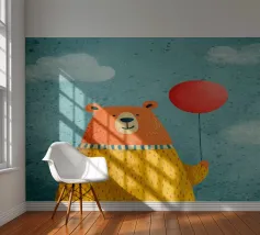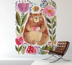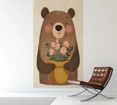 In a whimsical garden, a bear holds a juicy watermelon surrounded by fruits and a lush tree. The lively composition celebrates abundance and nature�s sweetness.