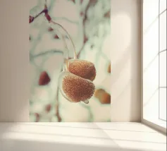 Una pannocchia di mais cruda catturata in verticale, che mette in mostra i suoi chicchi ordinatamente allineati e la seta marrone che scorre. Le texture naturali e i colori tenui creano una composizione astratta e giocosa, che si aggiunge in modo eccentrico e affascinante a cucine, sale da pranzo o spazi moderni ed eclettici.