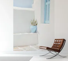 Fuggite in un paradiso bohémien con questa splendida fotografia di una doccia esterna bianca su un tetto illuminato dal sole di Marrakech. Il design minimalista, con le sue linee pulite e le texture naturali, si fonde perfettamente con il caldo sole marocchino, creando un'oasi di tranquillità sopra la città. Circondato da pareti bianche e piastrelle in terracotta e da una leggera brezza, questo spazio sereno evoca un senso di libertà e relax. Ideale per infondere alla vostra casa l'eleganza rilassata dello stile marocchino, questa immagine cattura la bellezza della vita all'aperto e lo spirito del fascino senza tempo di Marrakech.