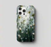 Questo incantevole pezzo cattura una vista mozzafiato, a occhio di verme, di un campo fantastico dove fiori bianchi e traslucidi con delicati petali a ventaglio si protendono verso il cielo. I fiori eterei, che ricordano dente di leone o giglio, sono illuminati dall'interno e proiettano una luce calda e dorata che crea un'atmosfera magica e onirica. Sotto gli steli si intravede un rigoglioso e verdeggiante suolo forestale, che ancorano la scena ultraterrena a un senso di meraviglia naturale. La composizione attira lo sguardo verso l'alto, in direzione di un baldacchino radioso, simile a una stella, che suggerisce una meraviglia celeste o architettonica che funge da sfondo.