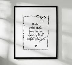 Testo personalizzato - bianco e nero - con cornice, fiocco e cuore. Poco testo, tanto cuore! Crea il tuo poster personalizzato!