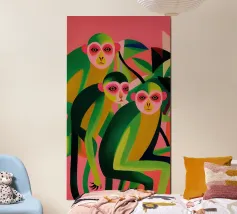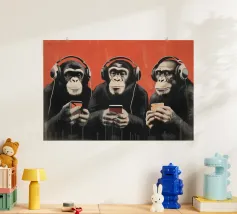 Questo trittico di street art provocatorio cita il famoso motivo delle "Tre Scimmie" con un tocco sovversivo. L'estetica dello stencil di Banksy incontra la ribellione punk al neon: la saggezza classica diventa critica mediatica contemporanea. Le barre fluorescenti simboleggiano la censura digitale in una società sotto sorveglianza. Il dramma monocromatico con accenti sgargianti crea un'atmosfera da galleria urbana. Una dichiarazione intelligente per tutti coloro che vedono l'arte come commento sociale. La ribellione incontra la filosofia. Mostrate il vostro interesse per i problemi sociali con quest'opera.