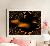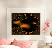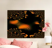 L'immagine mostra movimenti e modelli dinamici frattali in arancione e nero.