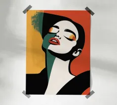 Ritratto astratto di una donna con un trucco audace carta hahnemühle