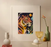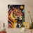 Una tigre stilizzata con accenti di colore astratti su uno sfondo scuro. Perfetto per disegni creativi sulla natura, illustrazioni di animali moderni e progetti artistici.Tigre astratta e potente in uno schema di colori moderno. Combinazione di forza naturale e stile artistico. Perfetta per progetti creativi a tema animale o naturalistico. Superfici chiare, colori vivaci e forte simbolismo. Per gli amanti del design, dell'arte e dei motivi animali.