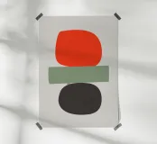 Balancing Shapes No. 2" è un'opera d'arte minimalista con una composizione chiara e una tensione tranquilla. Tre forme semplici e organiche in rosso deciso, verde tenue e nero profondo creano un equilibrio moderno tra energia e quiete. Una dichiarazione minimalista per gli ambienti che devono emanare forza e chiarezza. Perfetto per: Sale studio, soggiorni, pareti di gallerie o studi creativi.