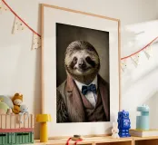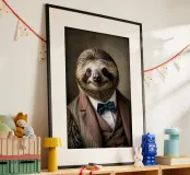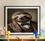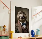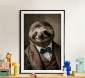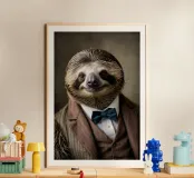 Ecco il bradipo Dapper, l'incarnazione dell'eleganza lenta e costante. Vestito con un raffinato abito marrone e un papillon abbinato, la natura rilassata di questo bradipo è completata dal suo senso dello stile senza tempo. Con un atteggiamento calmo e composto, dimostra che la raffinatezza non ha sempre bisogno di fretta. Perfetto per gli amanti dell'arte stravagante e affascinante, questo ritratto aggiunge un tocco gentile e rilassante a qualsiasi stanza, fondendo il selvaggio con la raffinatezza classica.