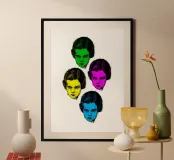 Un'illustrazione pop-art contemporanea con quattro ritratti disegnati a inchiostro, ciascuno immerso in una diversa tonalità vibrante. Faces in Color esplora l'emozione, l'identità e la ripetizione: un'eco moderna dell'individualità in un mondo di modelli e somiglianze.