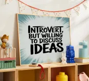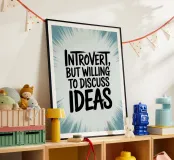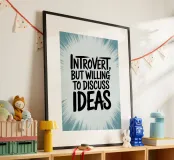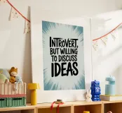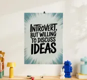 Un audace manifesto tipografico per i più riflessivi: "Introverso, ma disposto a discutere di idee" scritto con un espressivo stile a pennello su uno sfondo dinamico e luminoso. Questa opera d'arte cattura la voce del creativo tranquillo, del pensatore profondo, del sognatore silenzioso. Un'opera perfetta per gli spazi di lavoro, gli studi e tutti coloro che preferiscono la sostanza alle chiacchiere.