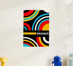 Un'esplosione di colori e forme, questo poster massimalista celebra i principi geometrici del Bauhaus con un tocco energico e moderno. L'opera d'arte presenta una densa composizione a piastrelle di quadrati, cerchi, triangoli e strisce in una tavolozza ricca e vivace che comprende verde brillante, arancione, rosa, rosso e blu. La disposizione dinamica incorpora blocchi solidi e aree a motivi, centrati da una striscia bianca pulita che ospita la parola "BAUHAUS". Questo file digitale ad alta risoluzione (7000x5000 pixel, 300 dpi) garantisce una stampa d'arte di livello professionale e di grande impatto visivo che attirerà l'attenzione.
