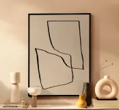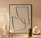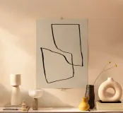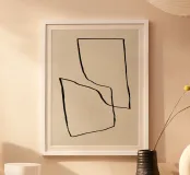 Due linee nere irregolari creano forme astratte su uno sfondo beige. La semplicità e la fluidità evocano un senso di calma ed equilibrio.