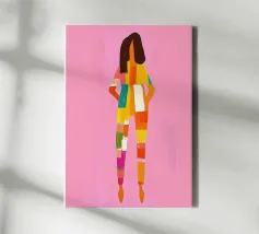 Fate una dichiarazione audace e divertente con questo dipinto figurativo incredibilmente vivace. La figura astratta di una donna, definita da folti capelli scuri, è composta interamente da blocchi di colore orizzontali e verticali in allegre tonalità di giallo, arancione, verde, rosa e bianco. Questa figura patchwork in stile arlecchino si staglia su uno sfondo dinamico e fortemente strutturato di colore rosa caldo, incarnando l'energia di Dopamine Decor e la giocosa tendenza Primary Play. Questa opera d'arte è pura sicurezza visiva. Questo poster digitale di alta qualità (7000x5000 pixel, 300 dpi) è un'opera d'impatto, perfetta per una parete di una galleria, per un'ambientazione creativa o per un'ambientazione di un'area di gioco.