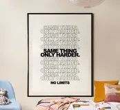 Accendete la vostra passione con la nostra pittura murale motivazionale "Same Thing Only Harder No Limits". Questa potente opera ispira una perseveranza incessante e la spinta a spingersi oltre i propri limiti. Stampata su tela di alta qualità, presenta una tipografia audace e colori vivaci, che la rendono un'aggiunta perfetta a qualsiasi casa, ufficio o palestra. Lasciate che questo promemoria quotidiano alimenti la vostra ambizione, incoraggiandovi a rompere le barriere e a raggiungere i vostri obiettivi. Trasformate il vostro spazio con la motivazione oggi stesso!