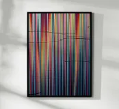Questa suggestiva opera d'arte astratta, "Vibrant Spectrum", cattura un gioco dinamico di colori e movimento. Linee verticali di larghezza variabile in una ricca tavolozza di blu intensi, arancioni infuocati, rosa brillanti e gialli tenui creano una trama ritmica, quasi intrecciata. Audaci e gestuali tratti neri attraversano la tela, interrompendo le linee ordinate e aggiungendo un elemento di energia grezza e spontaneità. Questo pezzo è una dichiarazione moderna e sofisticata, perfetta per aggiungere un tocco di colore e interesse visivo a qualsiasi spazio abitativo contemporaneo, ufficio o parete della galleria.