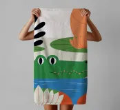 Godetevi la bellezza della natura con questa illustrazione di un coccodrillo che nuota in un bellissimo lago di loto. I colori vivaci e il design minimalista creano un'atmosfera allegra e piacevole.