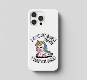 Un simpatico unicorno con una criniera arcobaleno siede circondato da stelle, accompagnato dal testo umoristico "Oggi non posso fare il cervello, ho il muto". L'immagine è collocata su uno sfondo semplice.