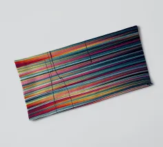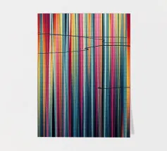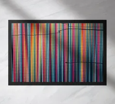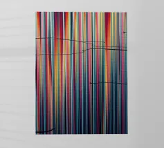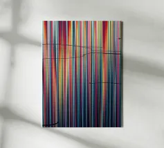 Questa suggestiva opera d'arte astratta, "Vibrant Spectrum", cattura un gioco dinamico di colori e movimento. Linee verticali di larghezza variabile in una ricca tavolozza di blu intensi, arancioni infuocati, rosa brillanti e gialli tenui creano una trama ritmica, quasi intrecciata. Audaci e gestuali tratti neri attraversano la tela, interrompendo le linee ordinate e aggiungendo un elemento di energia grezza e spontaneità. Questo pezzo è una dichiarazione moderna e sofisticata, perfetta per aggiungere un tocco di colore e interesse visivo a qualsiasi spazio abitativo contemporaneo, ufficio o parete della galleria.