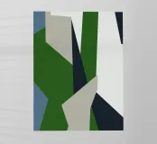 Un'immagine astratta con forme geometriche interconnesse in colori tenui come il verde, il grigio e il blu. La composizione crea un senso di movimento e complessità.