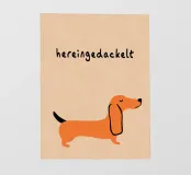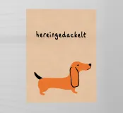 Il motivo mostra un simpatico bassotto arancione con il testo umoristico "Herein gedackelt" su uno sfondo beige. Disegnata nei caldi toni dell'arancione e del marrone, l'immagine combina in modo affascinante umorismo e fascino. Un'illustrazione giocosa e minimalista che rallegrerà qualsiasi ingresso con un sorriso.