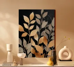 Una composizione ricca e lunatica di punti scintillanti d'oro e di morbido avorio sparsi su un profondo sfondo blu notte. Gli accenti metallici catturano la luce come bolle di champagne o coriandoli festosi, creando una celebrazione elegante ma giocosa di texture e colori. Perfetto per aggiungere un tocco di moderna raffinatezza a qualsiasi spazio.