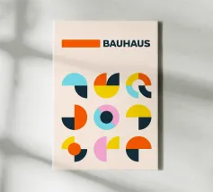 Questo poster sorprendente presenta un motivo a griglia complesso e modulare che supera i confini dell'estetica Bauhaus con una palette di colori vibranti ed estesi. I quadrati ripetuti contengono cerchi, semicerchi e forme geometriche in energiche tonalità di arancio, rosa, verde lime, rosso e blu, in contrasto con il bianco e il nero. L'intricato disegno crea un effetto caleidoscopico, ancorato dalla parola "BAUHAUS" centrata al centro. Questo poster digitale ad alta risoluzione (7000x5000 pixel, 300 dpi) garantisce una stampa nitida e di qualità superiore, che si distingue per l'audacia e la modernità.
