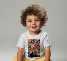 T-shirt per neonati di alta qualità realizzata al 100% in cotone biologico certificato.