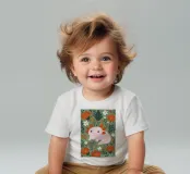 T-shirt per neonati di alta qualità realizzata al 100% in cotone biologico certificato.