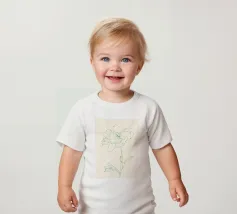 T-shirt per neonati di alta qualità realizzata al 100% in cotone biologico certificato.