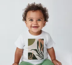 T-shirt per neonati di alta qualità realizzata al 100% in cotone biologico certificato.