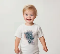 T-shirt per neonati di alta qualità realizzata al 100% in cotone biologico certificato.