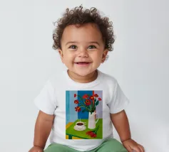 T-shirt per neonati di alta qualità realizzata al 100% in cotone biologico certificato.