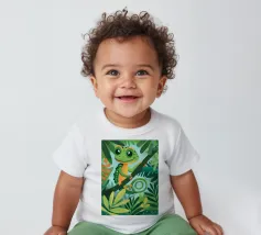 T-shirt per neonati classica e confortevole, con vestibilità morbida e pratici bottoni a pressione.