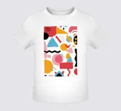 Una composizione astratta caotica e divertente in stile Memphis, con un assortimento casuale di forme geometriche, ghirigori e motivi. L'opera d'arte è energica, giocosa e ha una fresca atmosfera retrò.