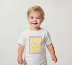 T-shirt per neonati di alta qualità realizzata al 100% in cotone biologico certificato.
