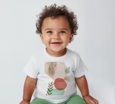 T-shirt per neonati di alta qualità realizzata al 100% in cotone biologico certificato.